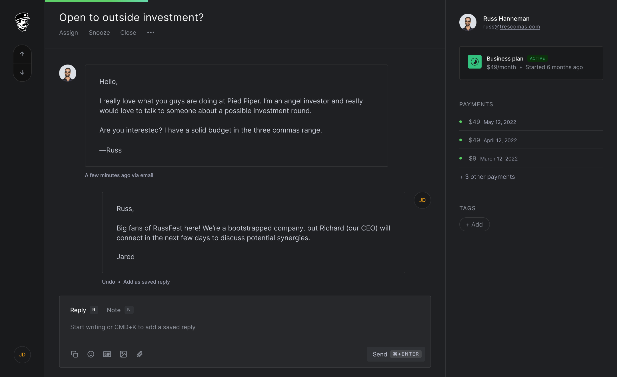 for founders doing their own support.