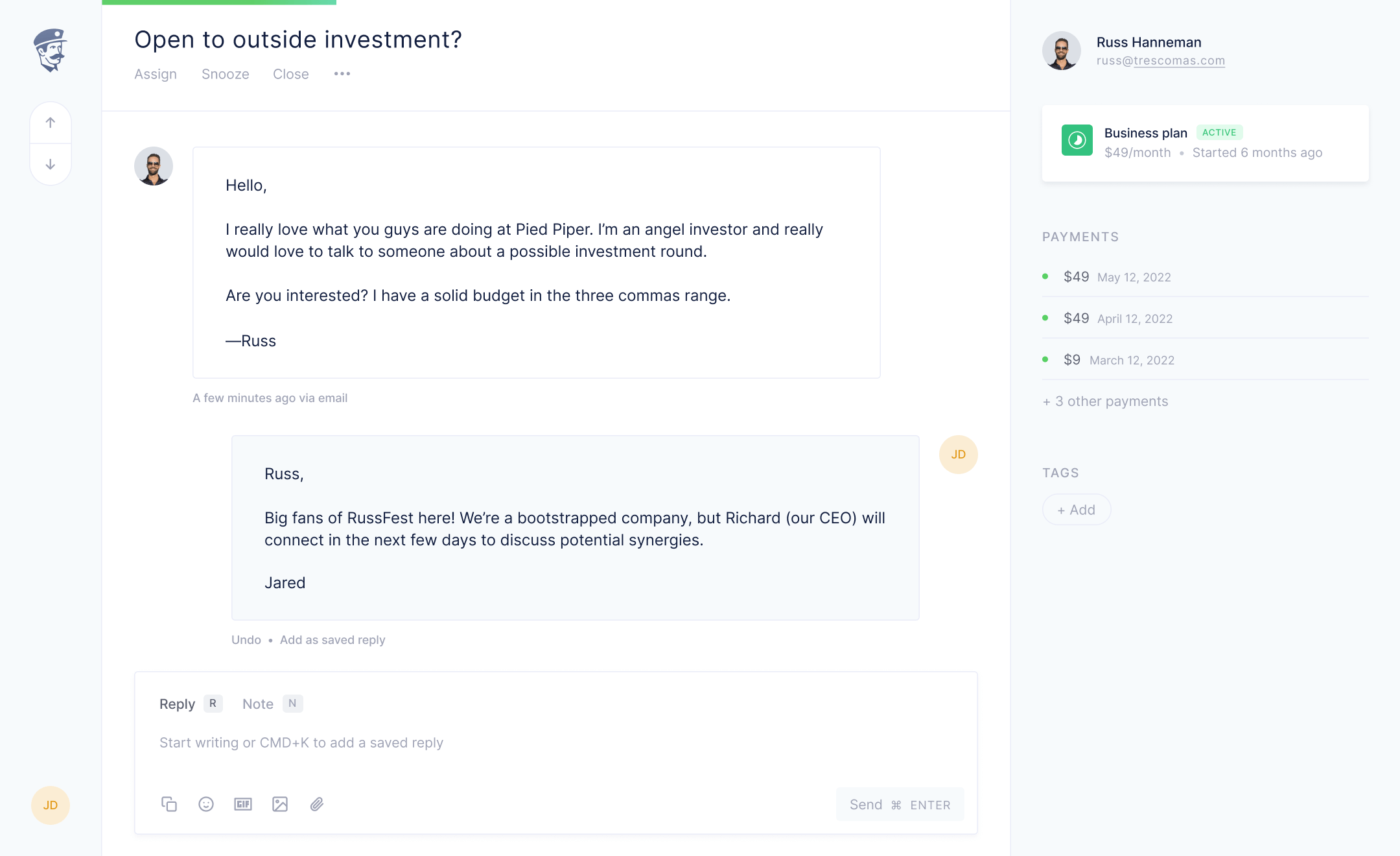 Fly through your requests for just $29/user/month.Forget that crazy Intercom bill.